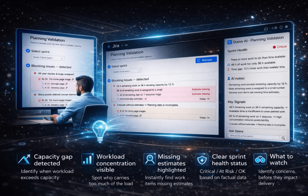 Teams use Staive to validate sprint readiness, detect delivery risks early, and make data-driven decisions directly inside Jira.